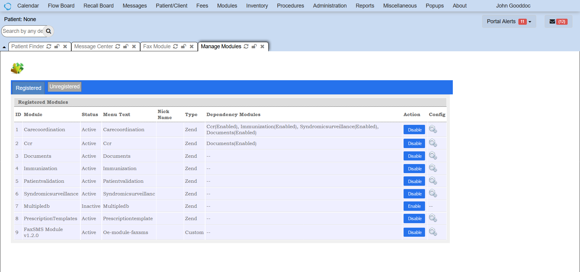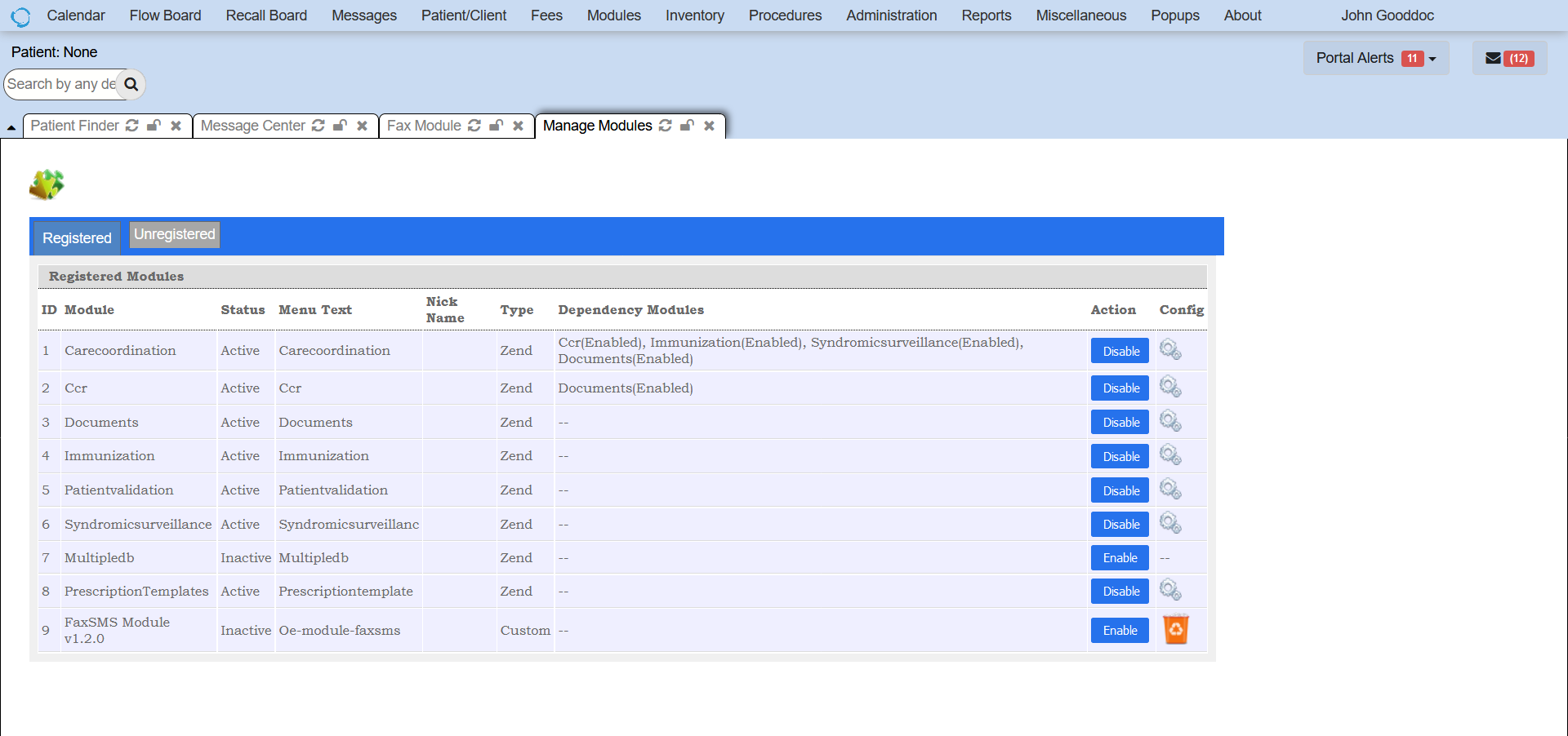 However, after restarting apache and openemr, I do not find any unregistered modules. I do find a screen showing up under Administration->Patient Reminders. Is that what I should expect for the older version? I mistakenly signed up for clickatell before seeing the note in green on the wiki page about a lot needing to be done to make it work. What would be my best option for getting this version sending SMS and potentially fax - Ringcentral since I am in the US? Thanks for your help.
