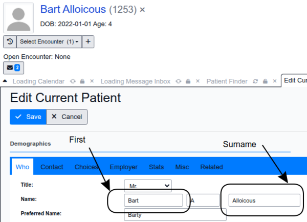This wiki page shows the steps carried out in a standard appointment/ encounter, including locating a patient record: