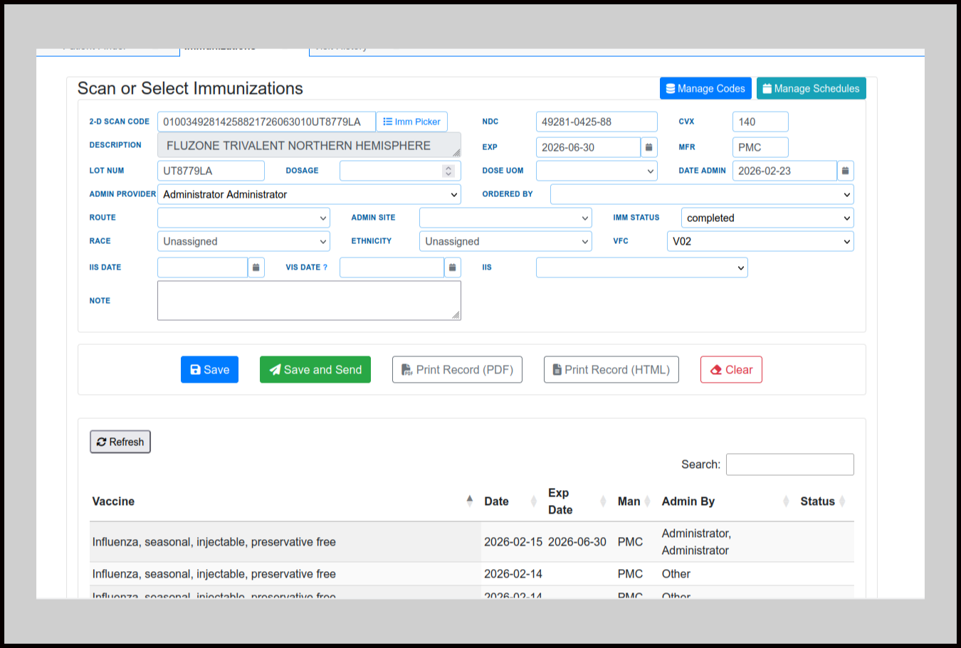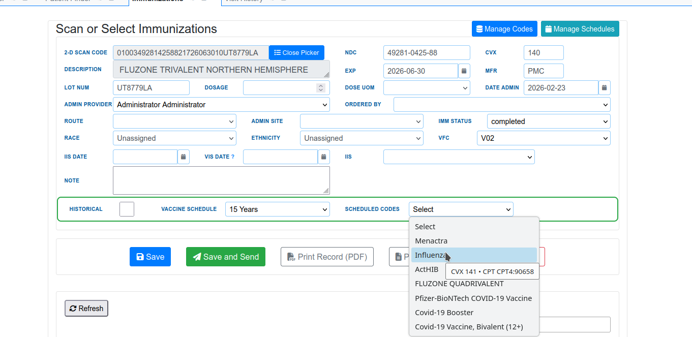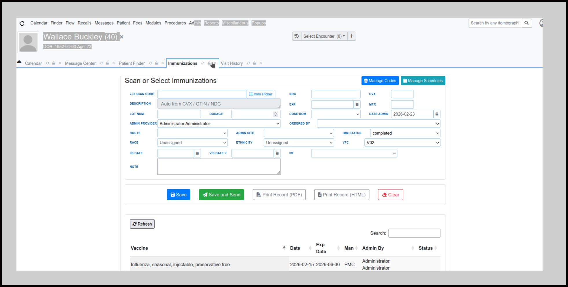 Hi all. I wanted to let the community know that I am soon to completion an improvement to the immunizations capability. I have made an improvement to the form / interface and added the ability to use a scanner. If a scan label is damaged, the ability to use a vaccine picker is also available. People with admin access can enter / edit/ delete vaccines via a vaccine codes table. There is also the ability for creating a vaccine schedule list so when that age-group or specific schedule is selected, a drop down list lets you select a generic vaccine. Here is a quick glimpse of what to expect for the next pull request: