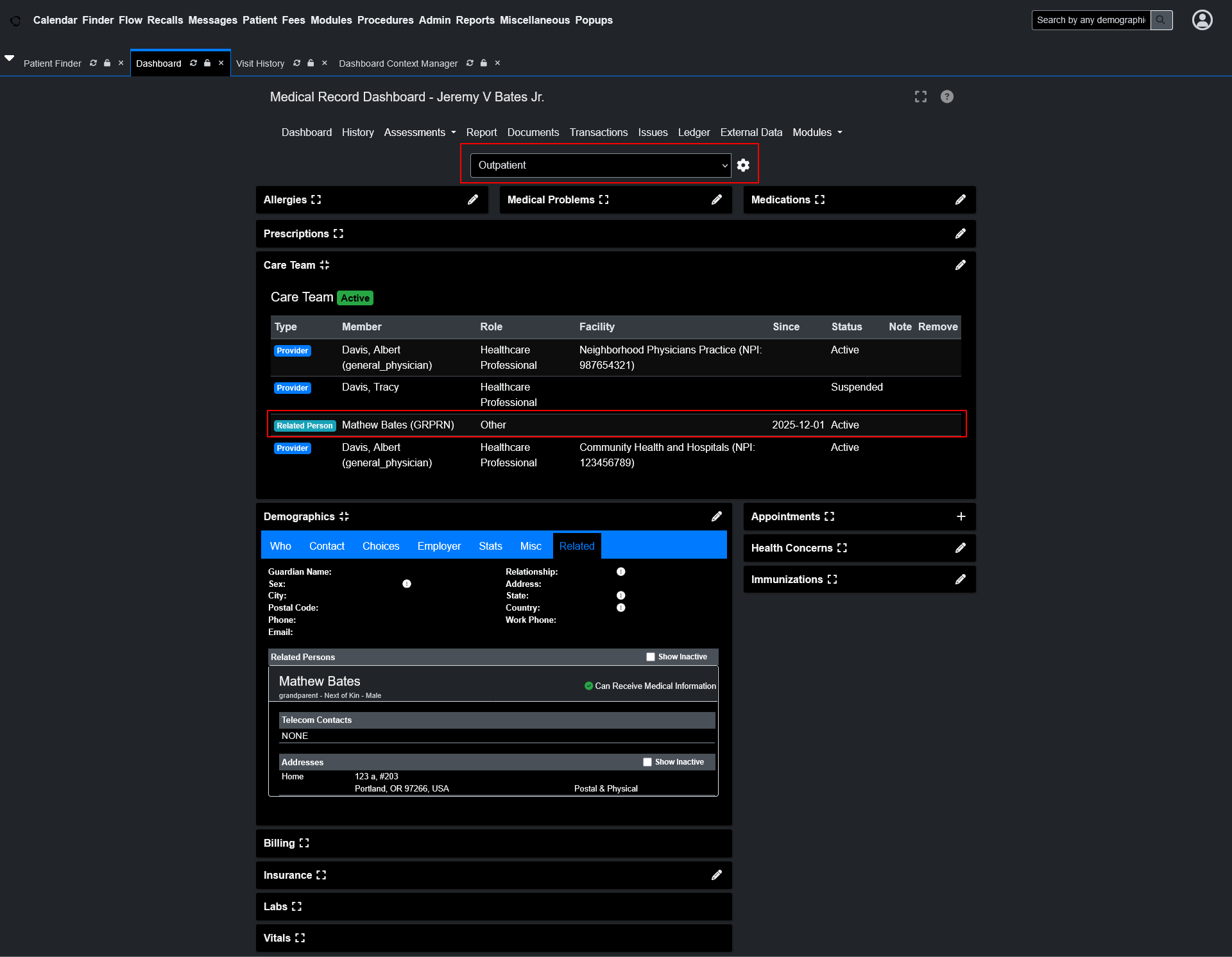 Primary Care - comprehensive view with all widgets