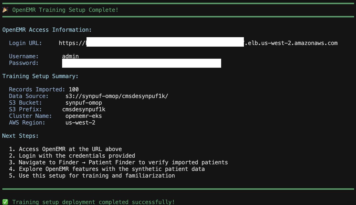 ./scripts/deploy-training-openemr-setup.sh --use-default-dataset --max-records 100