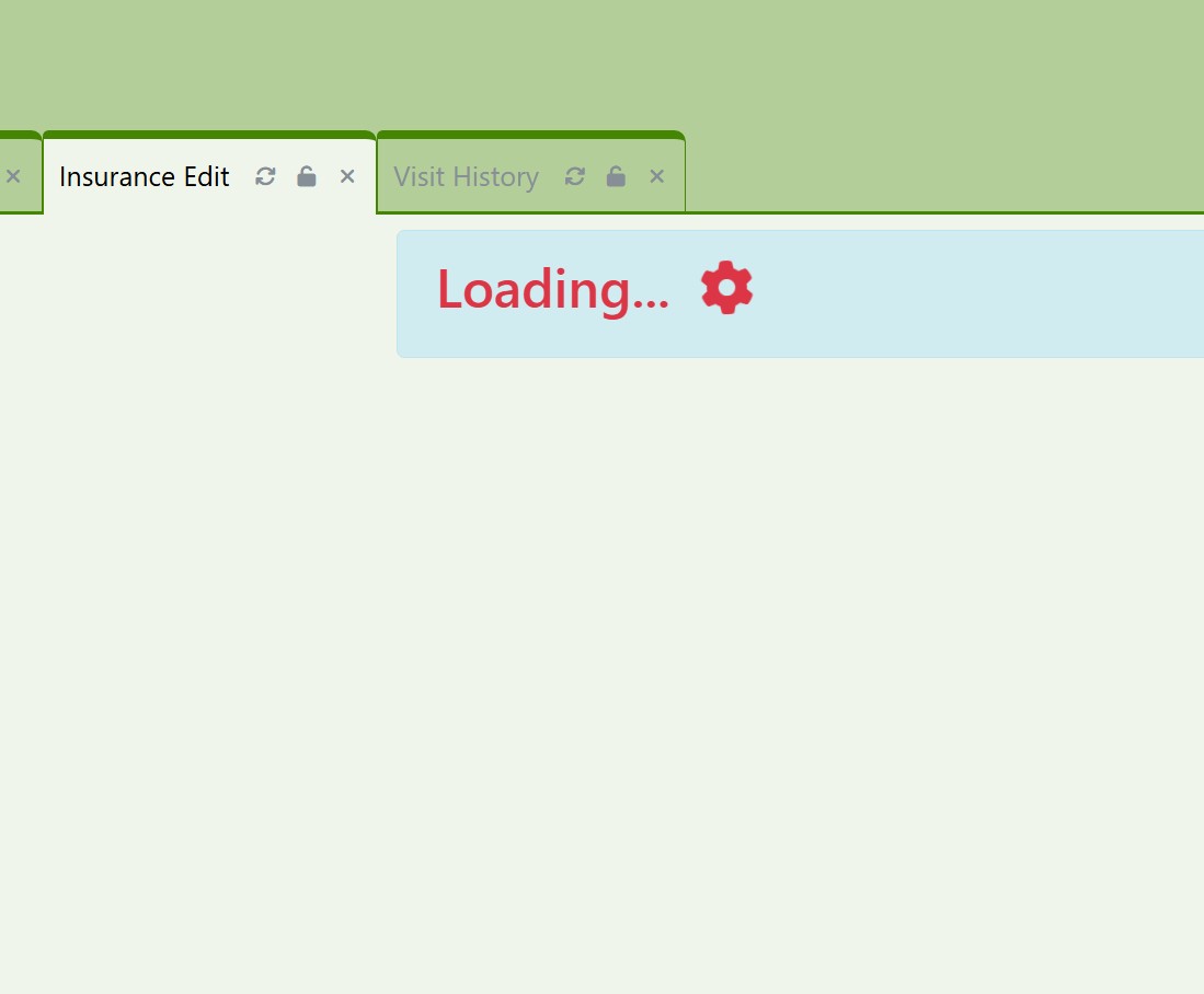 When I clicked on Primary Insurance in Dashboard it just showed a Loading page and would not pull up the Primary Insurance page so I’m unable to change or add any patient’s information. This is a critical error because it affects how we bill insurance. I can replicate the same error on the main Demo site.